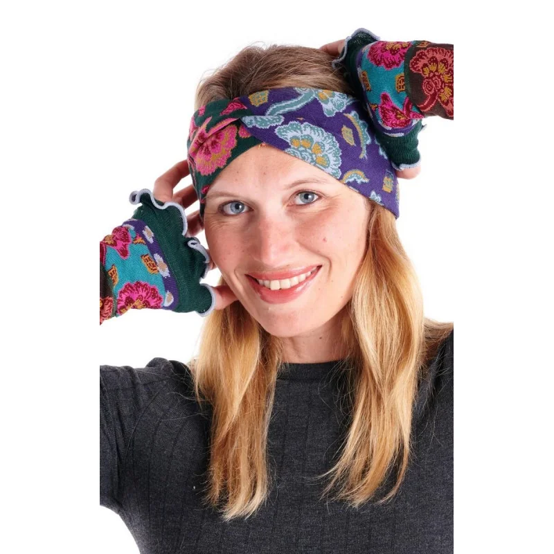 Bandeau Dub et Drino En bambou à fleurs vert et bleu effet dye