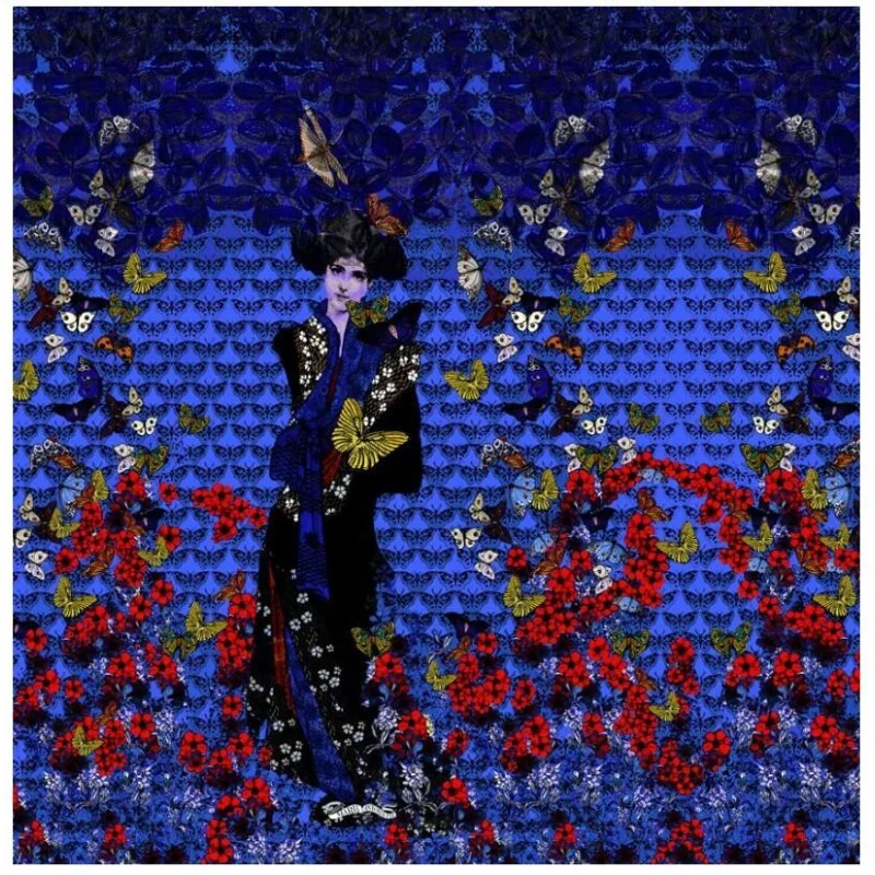 Les collections de collants et accessoires de Marieantoinette s’enrichissent de ce joli carré imprimé de 90 par 90 cm de soie synthétique imprimé du dessin de la créatrice Guillemette, une oeuvre intemporelle et ludique dans les indigo bleu.