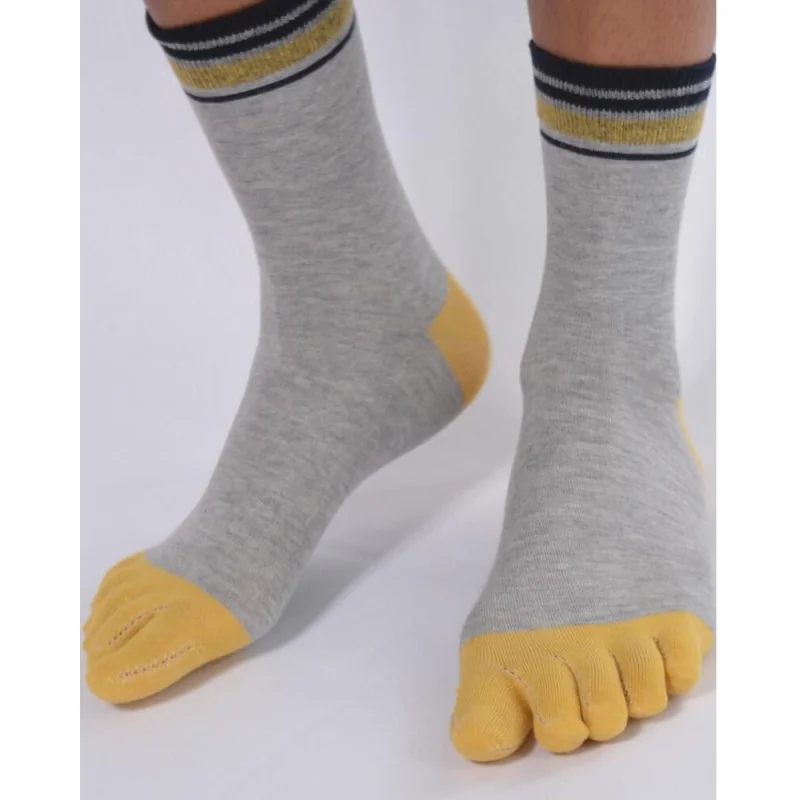 Des chouettes chaussettes tenances à rayures et à doigts de pieds sympas avec un bel effet doigts de pieds.