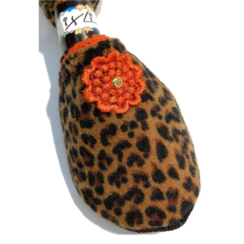 Chausson rigolo en polaire fin de voyage, tellement mini qu’on peut le porter partout.