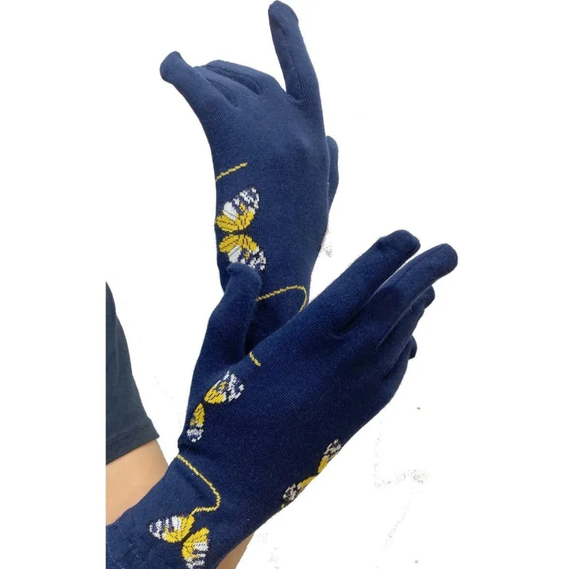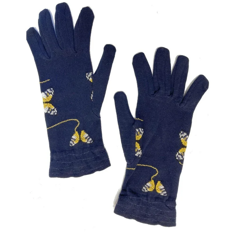 La manufacture Perrin en Bourgogne fabrique Ces jolis gants en coton très souple en tendance marine avec de jolies papillons Ocres tendance
