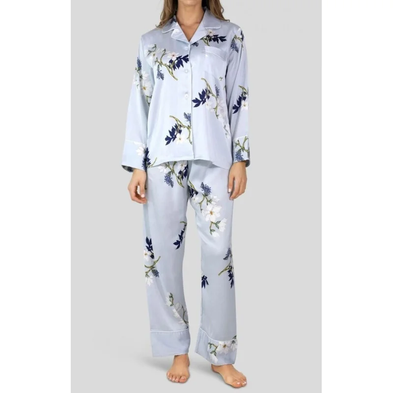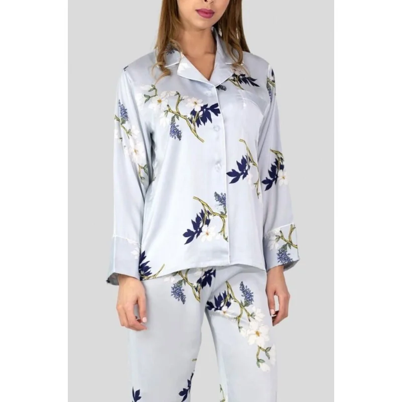 Tout confort dans ce pyjama chic, léger en satin fluide et soyeux. HN a soigné la coupe haut boutonné façon chemisier et pantalon souple .