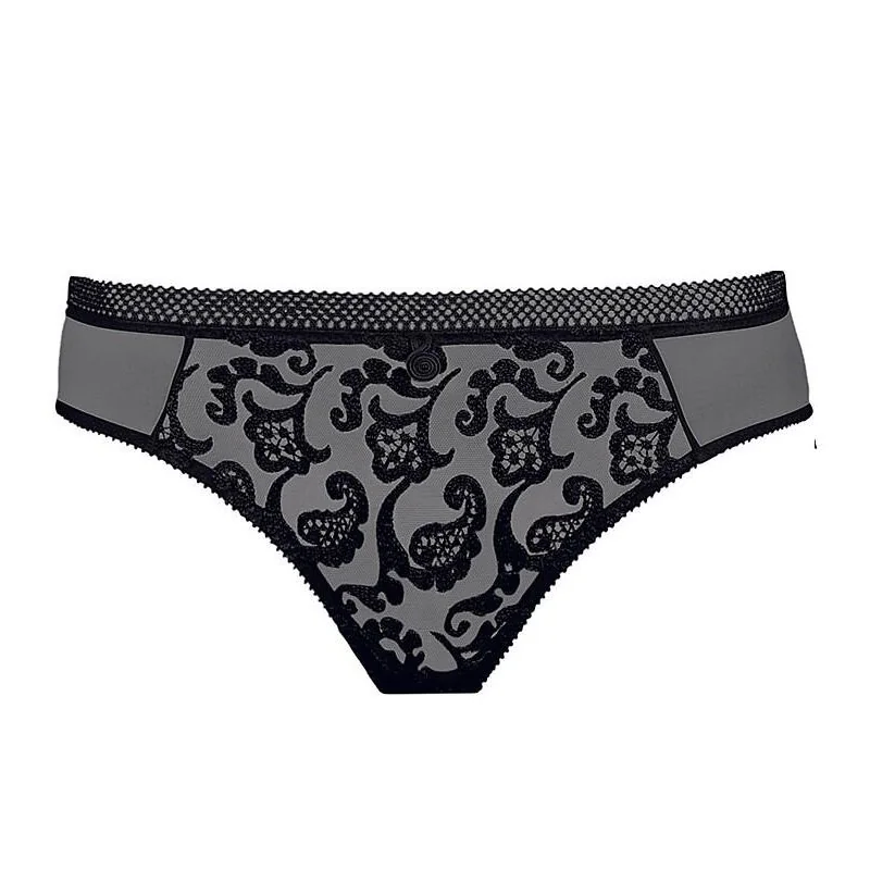 Empreinte joue du bel effet de son tulle brodé pour vous faite profiter de son savoir faire très élégants une culotte qui souligne la taille et les hanches avec charme et séduction.