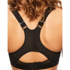 Le sein est bien tenue dans une coque moulée soupe qui bloque la poitrine, les bretelles sont crantées à l’avant pour optimiser le réglage, l’épaule est élargie pour un bon support et alléger le poids de la poitrine, les bretelles sont multi positions afin de s’adapter au mieux à votre activité.